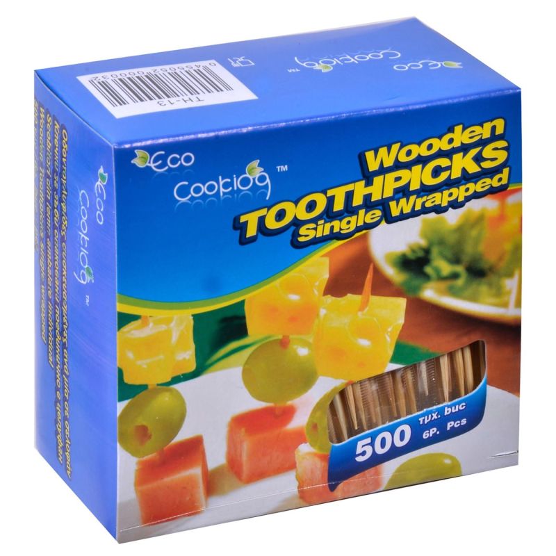 500 броя дървени клечки за зъби в пластмасова кутия.