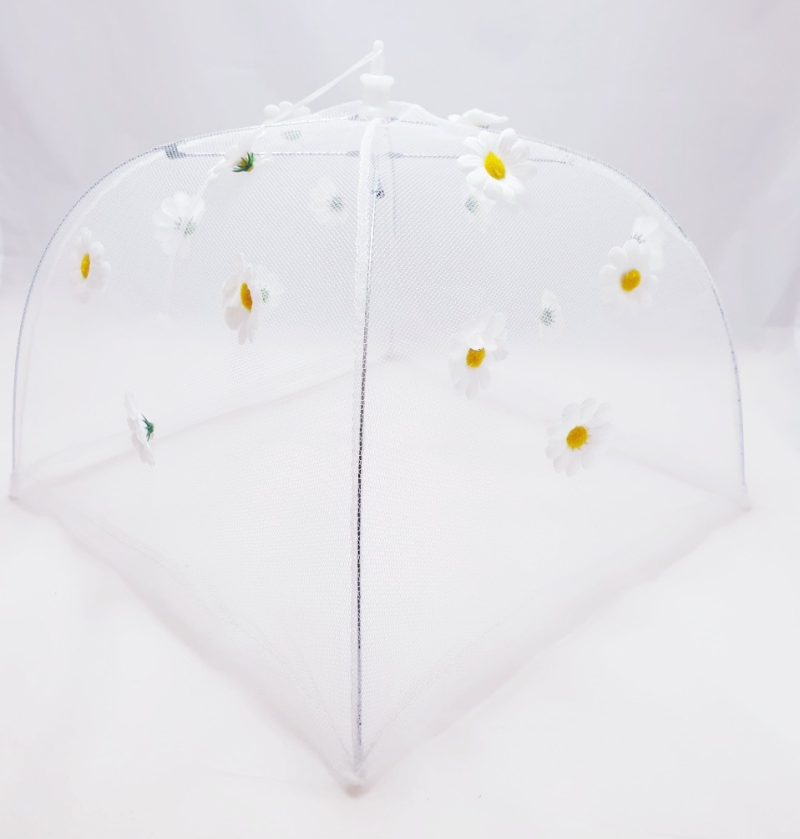Сгъваем квадратен чадър покривало с декоративни маргаритки, който ще защити вашата храна от всички неприятни насекоми и замърсявания.