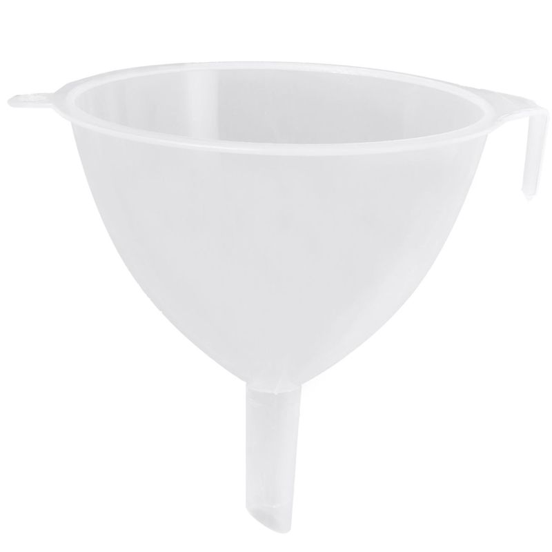 Универсална пластмасова фуния в бял цвят с удобна дръжка.