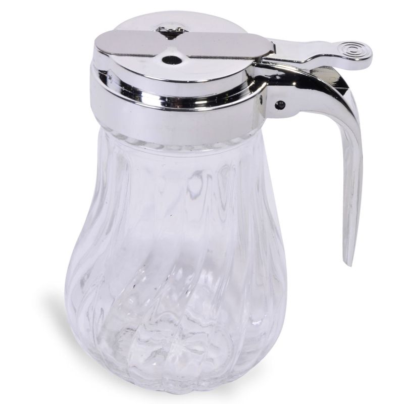 Стъклена каничка за съхранение на мед с удобна метална дръжка и капак в в сребрист цвят. Винаги, когато ви потрябва мед за закуска или чай, тя ще ви бъде подръка. Освен това ще придаде допълнителен стил и елегантност на всяка маса.