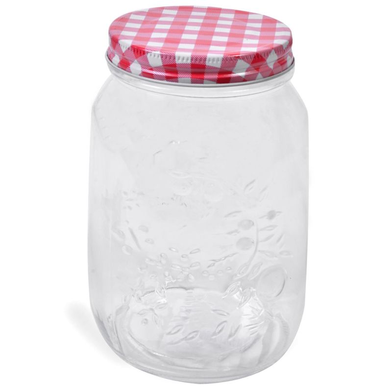 Стъклен буркан с цветен метален капак, гарантиращ плътно херметическо затваряне.
