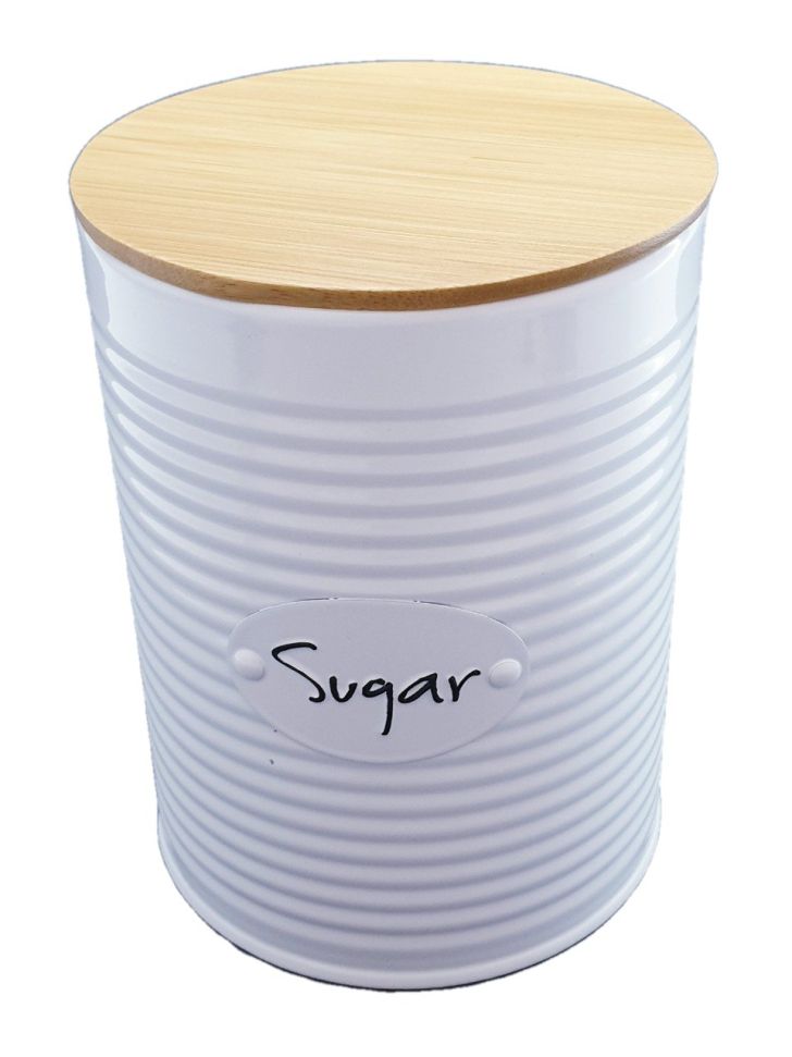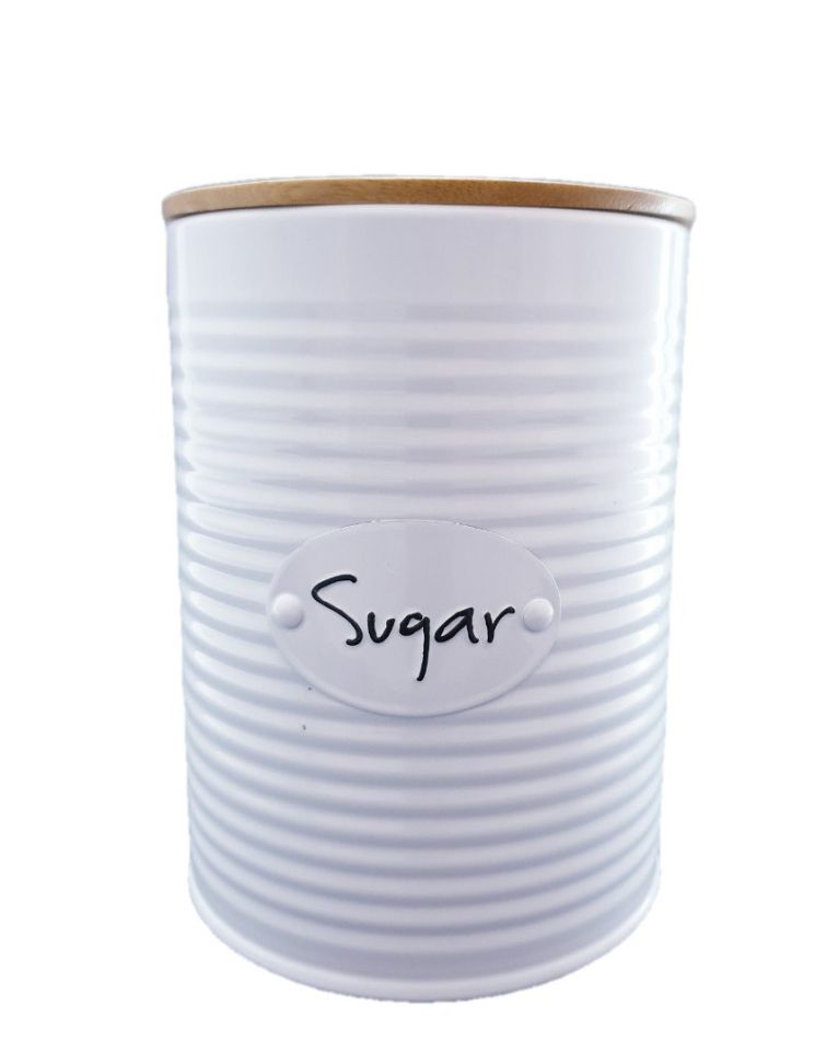 Метална захарница с капак, осигуряващ херметическо затваряне без опасност от разсипване.