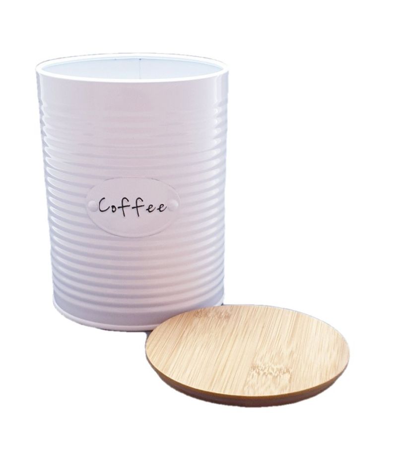 Метална кутия за съхранение на кафе с капак, гарантиращ херметическо затваряне, което запазва аромата и свежестта на кафето.