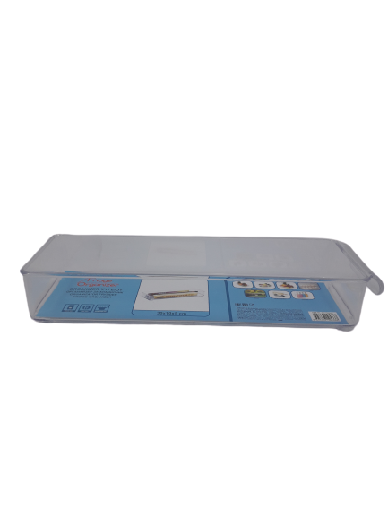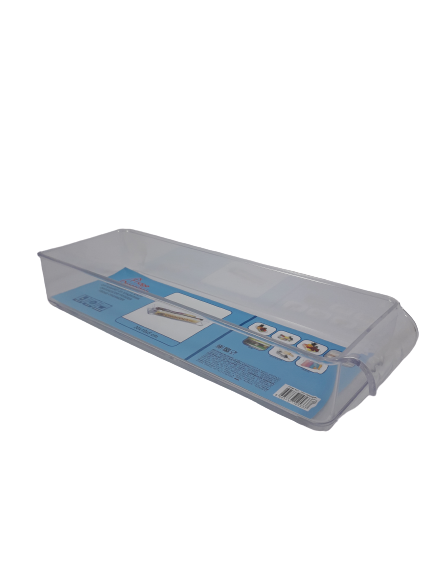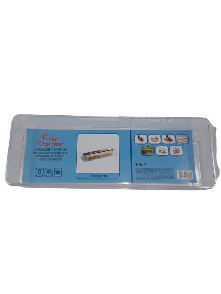 Пластмасов прозрачен органайзер за хладилник със странична дръжка, който е идеален за кенчета бира или безалкохолни напитки. С възможност за позициониране един върху друг.