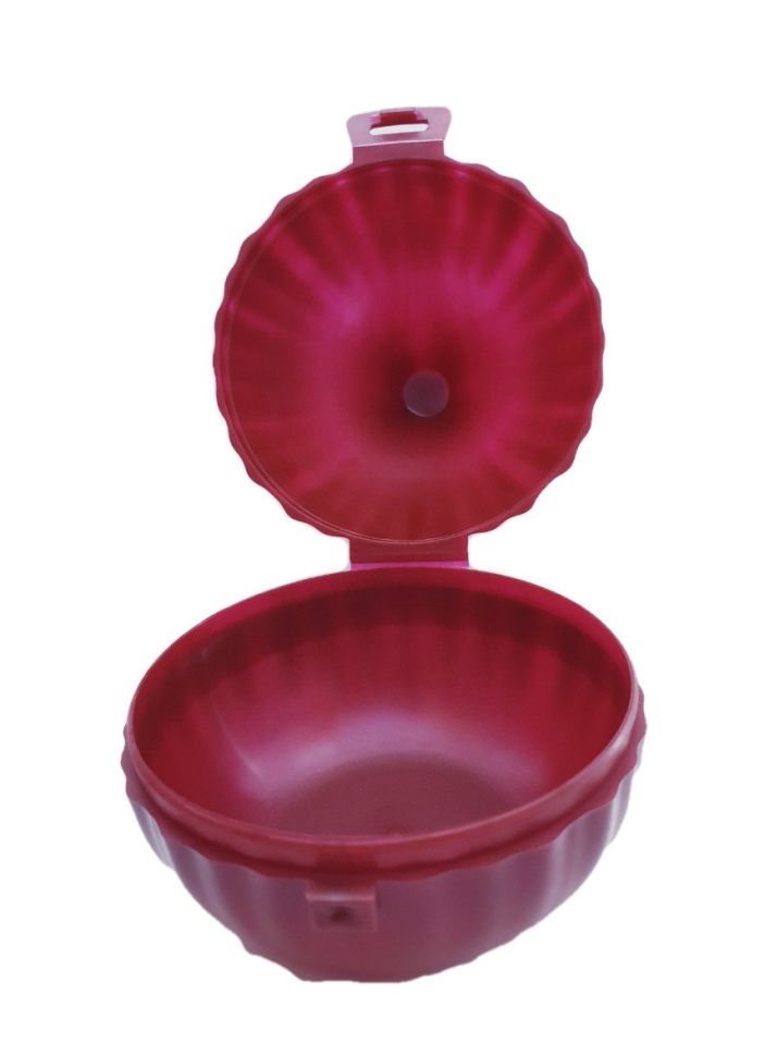 Пластмасова кутия в тъмно червен цвят за съхранение на кромид лук в хладилник - запазва лука винаги свеж и сочен.