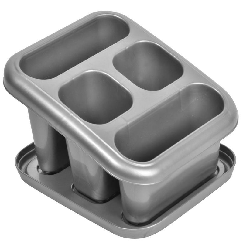 Пластмасова поставка в сив цвят за прибори за хранене с 4 отделения.