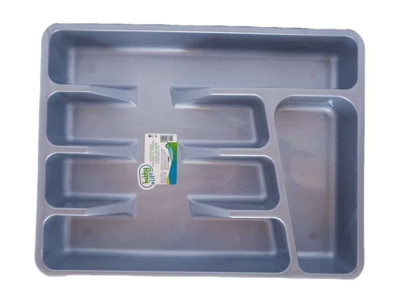 Практична пластмасова поставка в сив цвят за прибори за хранене за чекмедже или шкаф.