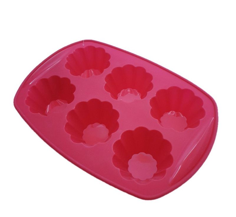 Силиконова форма в лилав цвят за печене на сладки или солени мъфини с 6 отделения.