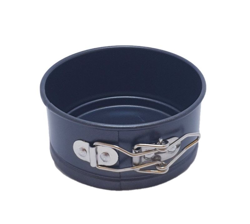 Кръгла метална форма в черен цвят с падащо дъно за печене на кекс, пай, плодови десерти и други.