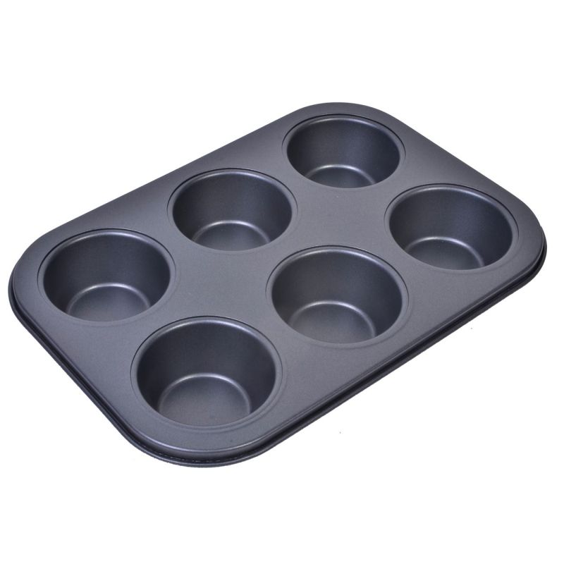 Метална форма в черен цвят за печене на сладки или солени мъфини с 6 отделения.