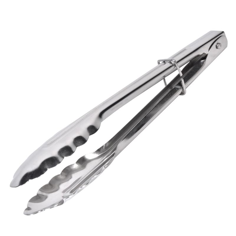 Кухненска метална щипка за скара, готвене и сервиране, изработена от неръждаема стомана с удължена дръжка за максимално удобство при употреба.
