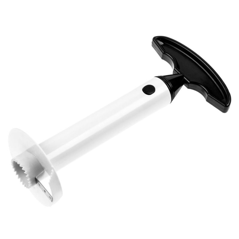 С този специално проектиран за ананас инструмент лесно обелвате плода и изваждате сърцевината, нарязана на равни шайби. Така получавате повече плод и естествена купа за плодова салата от обвивката на ананаса, като запазвате максимално сока на плода вътре.