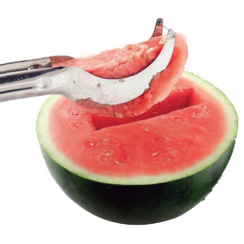 С този инструмент съчетаващ нож и щипки получавате равномерни парчета или пъпеш без опасност от порязване.