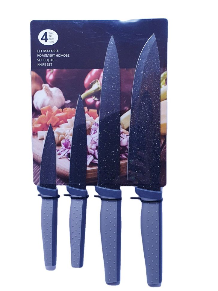 Кухненски комплект от 5 ножа, изработени от неръждаема стомана с различни размери и предназначение: 1 бр. нож за плодове и зеленчуци, 1 бр. универсален нож, 1 бр. нож на главния готвач и 1 бр. нож за месо.