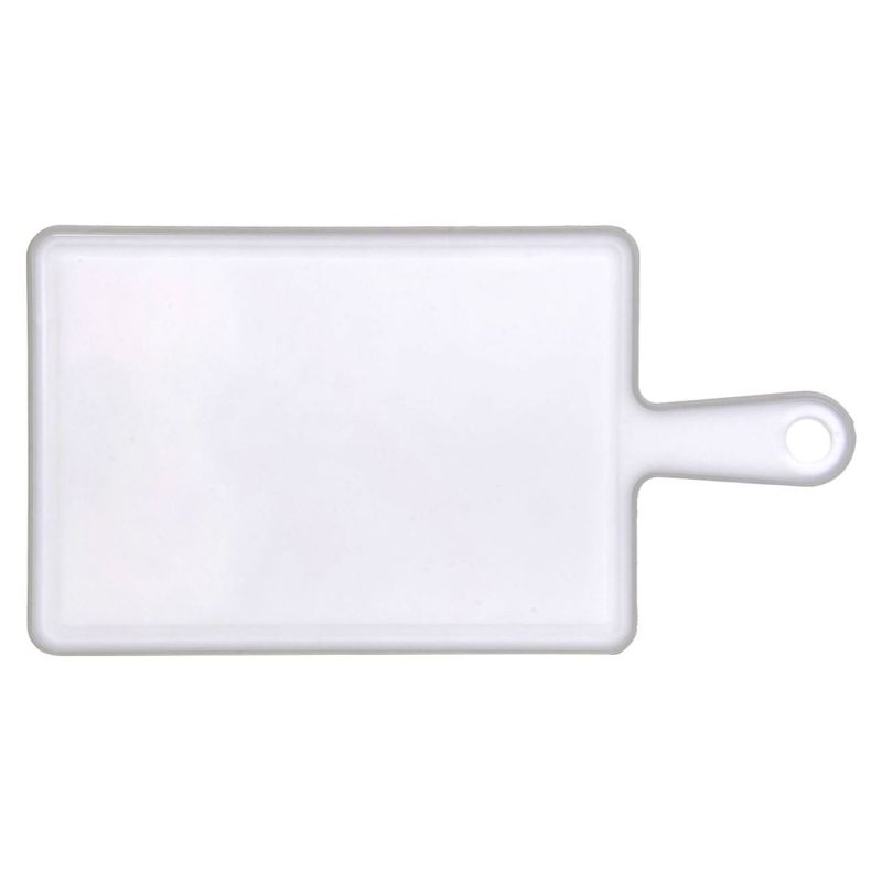 Кухненска дъска за рязане, изработена от висококачествена пластмаса в бял цвят с противохлъзгащо покритие.