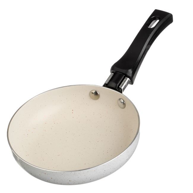 Мини тиган изработен от висококачествена неръждаема стомана с незалепващо покритие и ергономична пластмасова дръжка за стабилен захват при употреба.