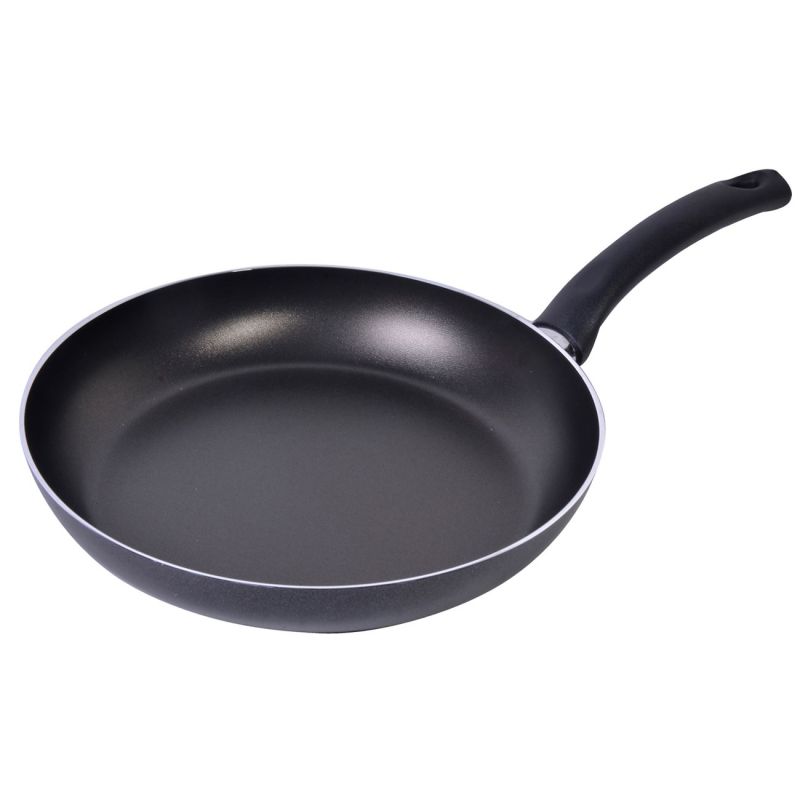 Кухненски тиган изработен от висококачествена неръждаема стомана с незалепващо покритие и ергономична пластмасова дръжка за стабилен захват и ефективност при работа.