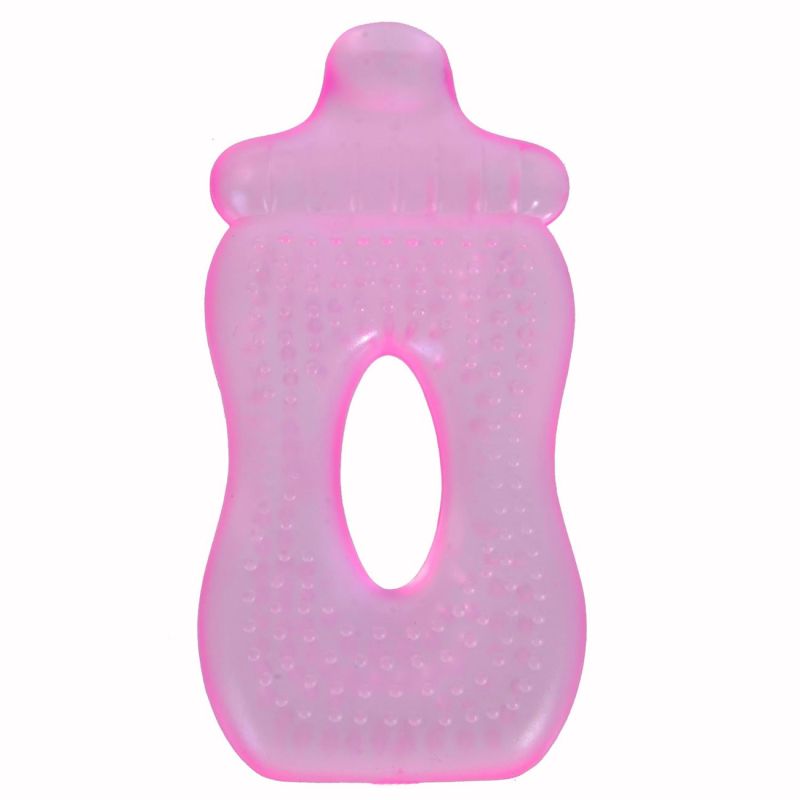 Силиконова гризалка във формата на биберон в розов цвят за момиченца с вода.