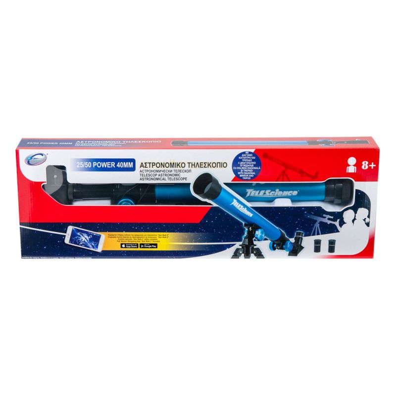 Детски астрономически телескоп с 40 мм. диагонален обектив с диагонално огледалце и триножник.