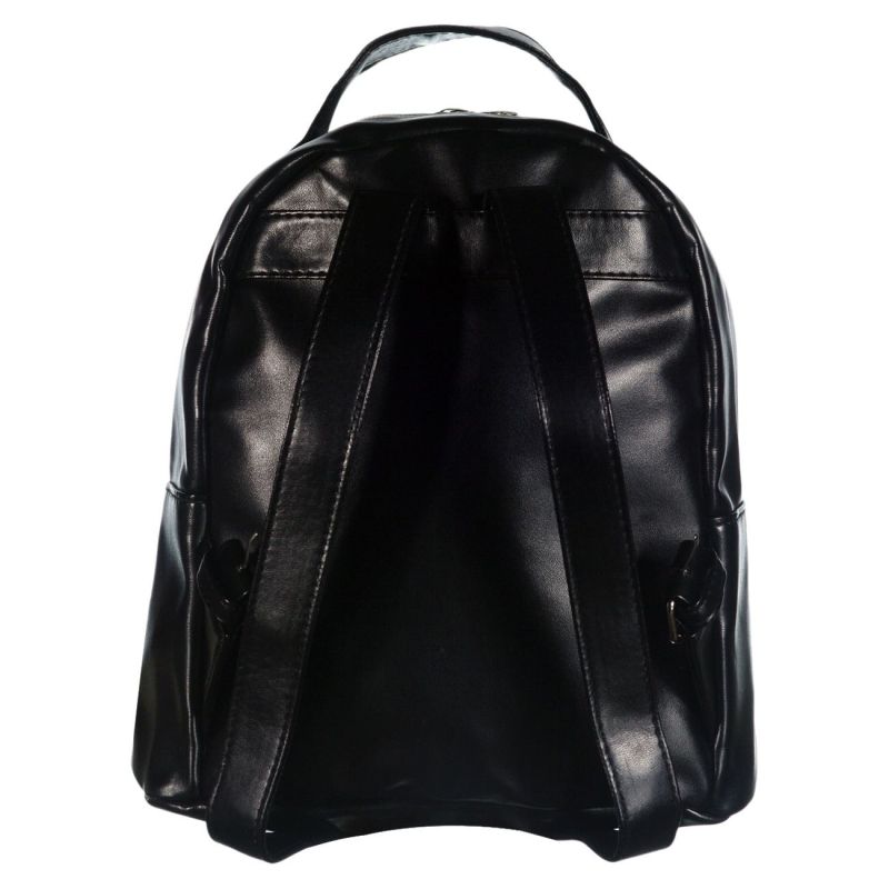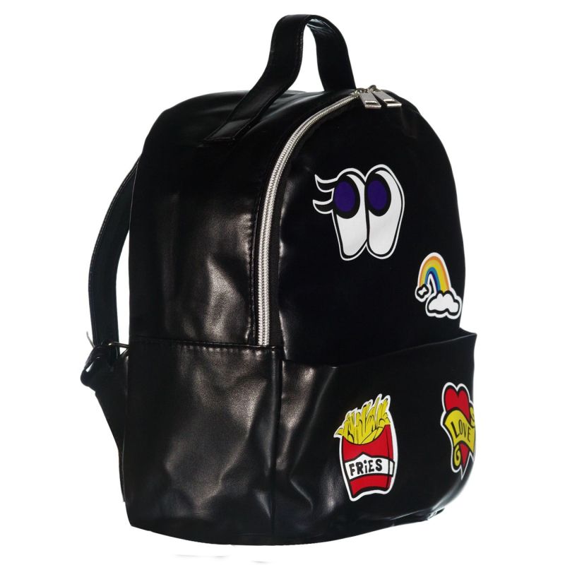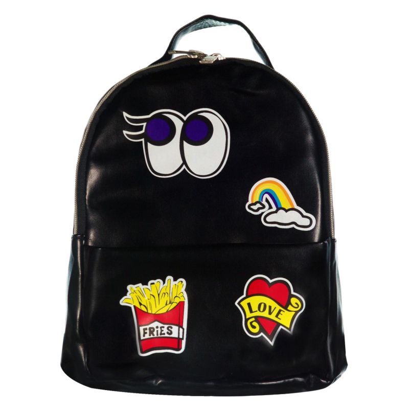 Дамска раница за пътуване в черен цвят със забавни апликации.