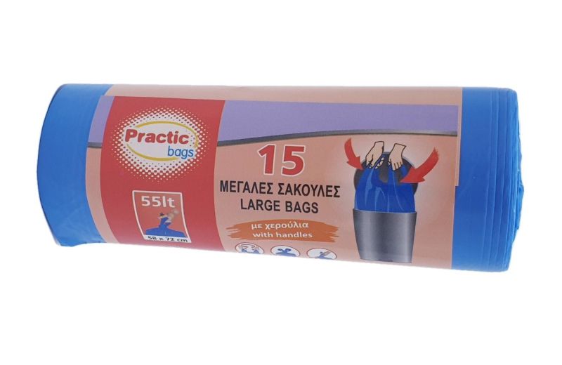 Торбички за смет - големи - с дръжки - 55 л. - 15 бр.