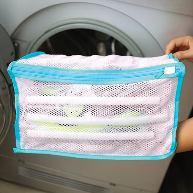 Специалният мрежест калъф предпазва обувките от смачкване и раздърпване в пералнята.