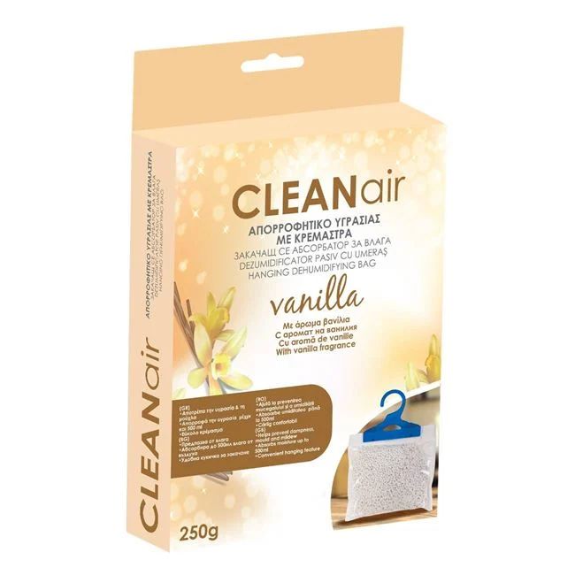 Закачащ се абсорбатор за влага с аромат на ванилия - успешно улавя излишната влага и неприятни миризми и предотвратява образуването на мухъл.