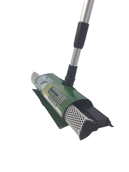 Пластмасова чистачка с телескопична дръжка и две страни за сухо и мокро почистване на автомобилни стъкла - абсорбираща гъба и каучукова лента, която ефективно подсушава, без да оставя никаква остатъчна вода и пяна.