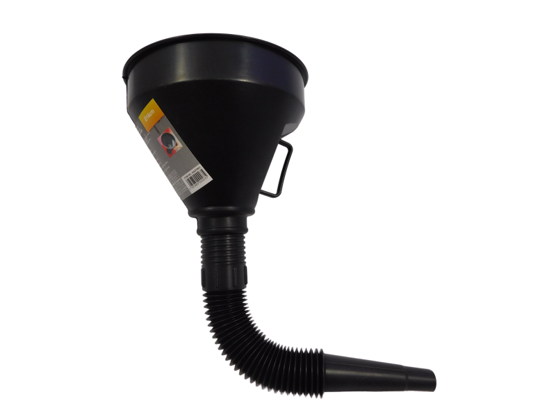 Фуния за бензин и масло, изработена от висококачествена пластмаса с гъвкав накрайник.