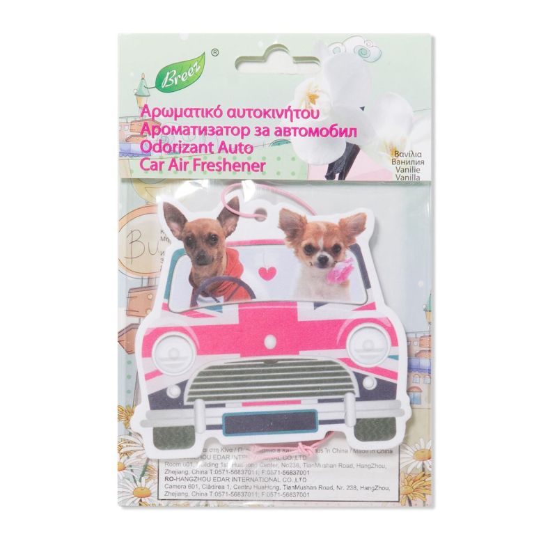 Ароматизатор за автомобил със забавна картинка на кученца и аромат на ванилия - сух продукт с приятен и деликатен аромат.