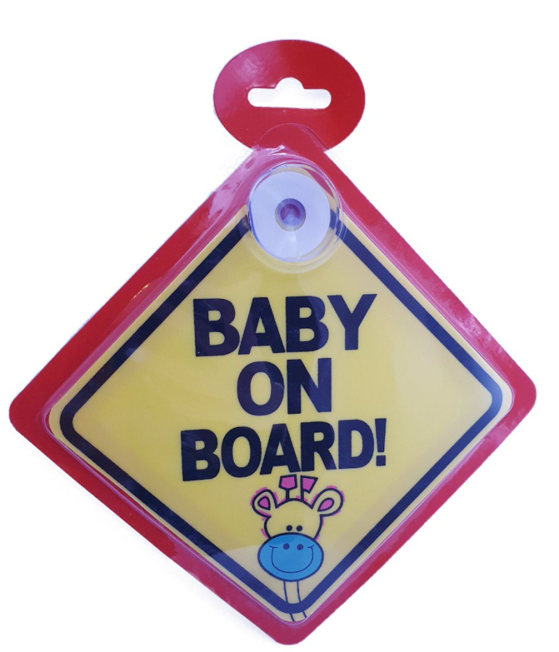 Указателен стикер за автомобил "Бебе в колата" в жълт цвят с картинка на симпатично жирафче.