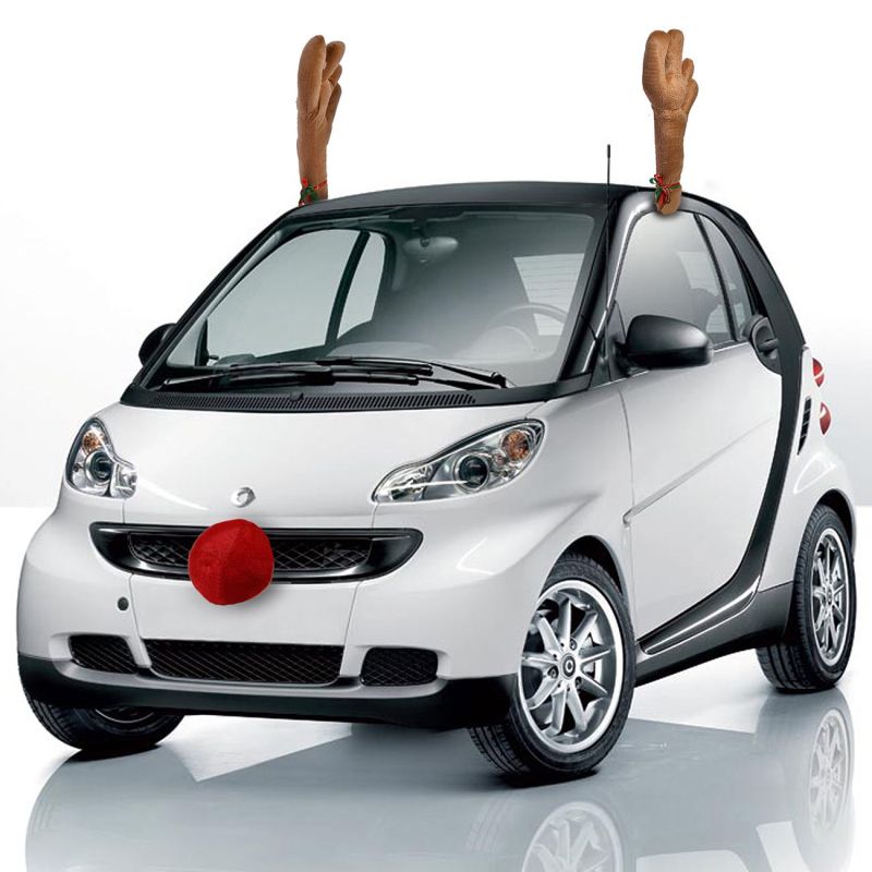 Коледен комплект за украса на автомобил, включващ 2 броя еленови рога и голям червен нос.