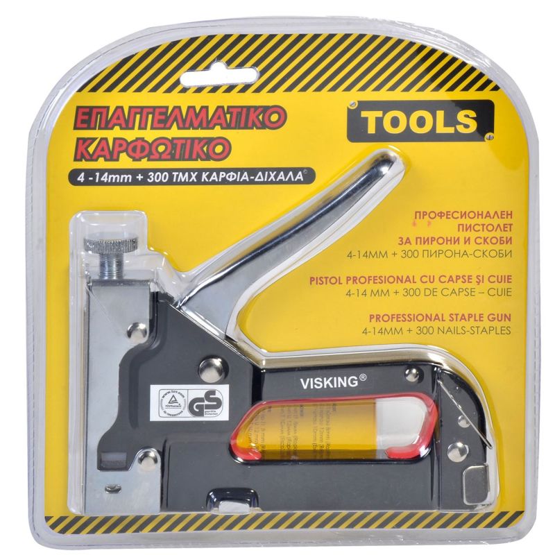 Професионален механичен пистолет (такер) за пирони/скоби (4-14 мм.) в комплект с 300 броя пирони/скоби.