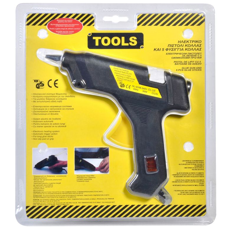 Електрически пистолет за топло лепене 60 W в комплект с 5 силиконови пръчки.