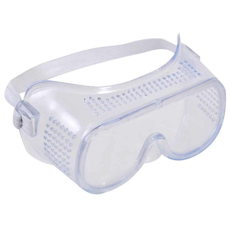 Защитни очила, изработени от висококачествена прозрачна пластмаса с директна вентилация и еластична регулируема лента.