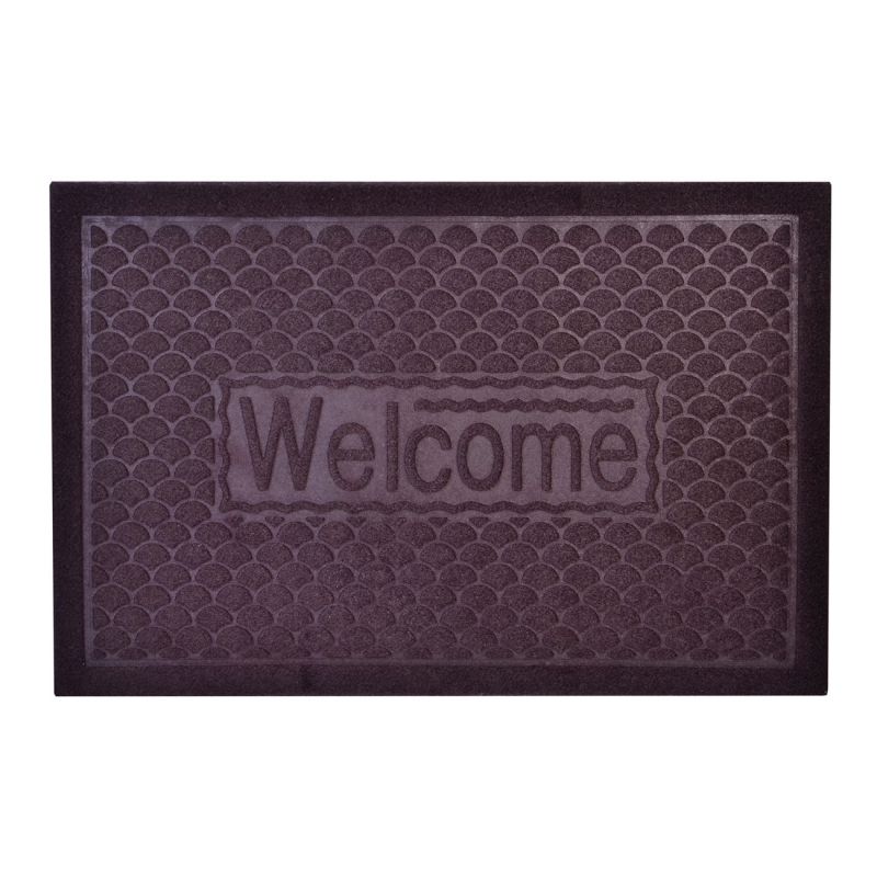 Входна изтривалка в тъмно кафяв цвят с надпис Welcome, изработена висококачествен мокет.