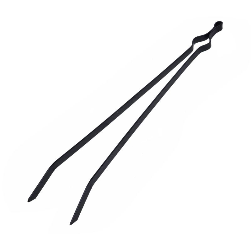 Голяма метална щипка в черен цвят предназначена за камина или барбекю с издължена дръжка за удобен и стабилен захват без опасност от парене или изгаряне.