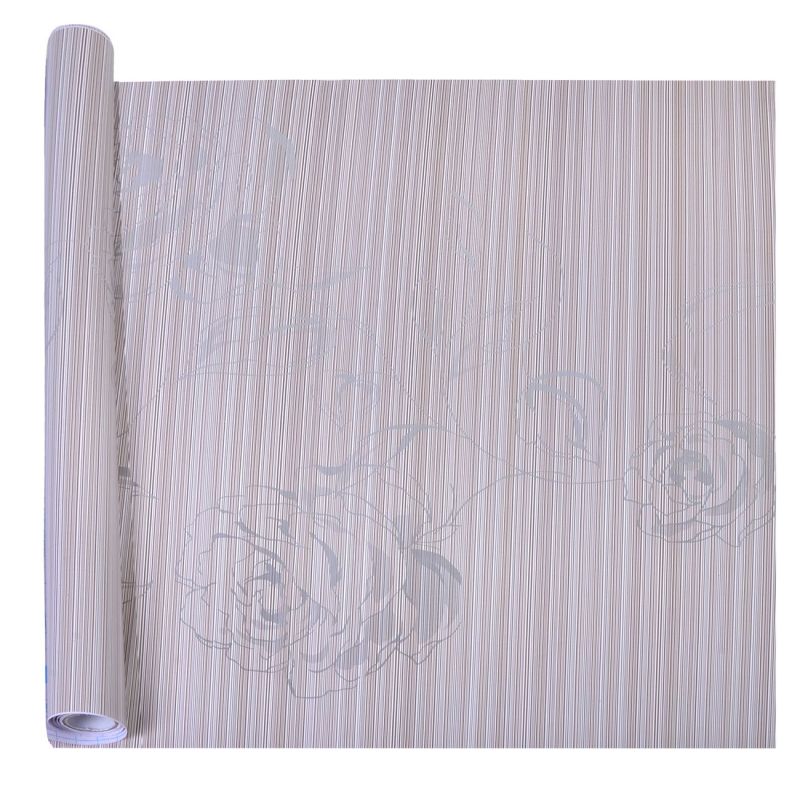 Декоративно самозалепващо фолио, изработено от PVC в бежов цвят с дискретен флорален принт на рози, предназначено за облепване на стари мебели, шкафове или гардероби.