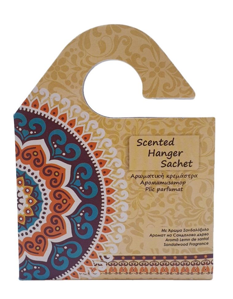 Ароматизатор за гардероб тип закачалка с приятно ухание на сандалово дърво.