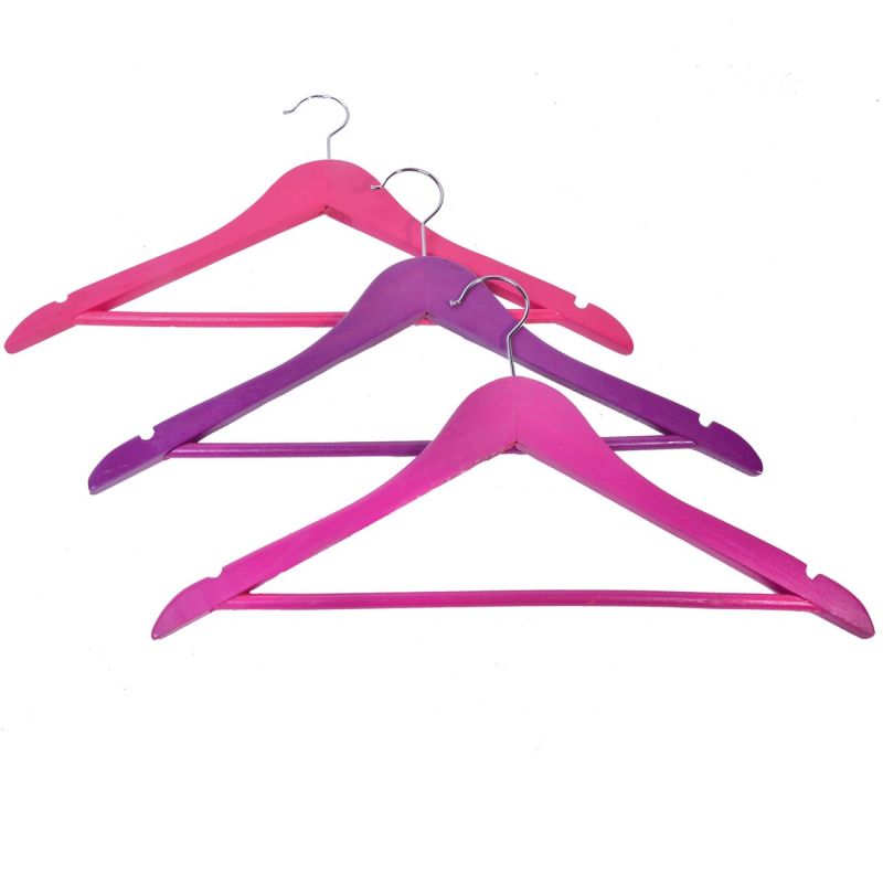 Комплект от 3 броя класически закачалки, изработени от високачествена дървесина в лилав цвят за дълготрайна употреба.