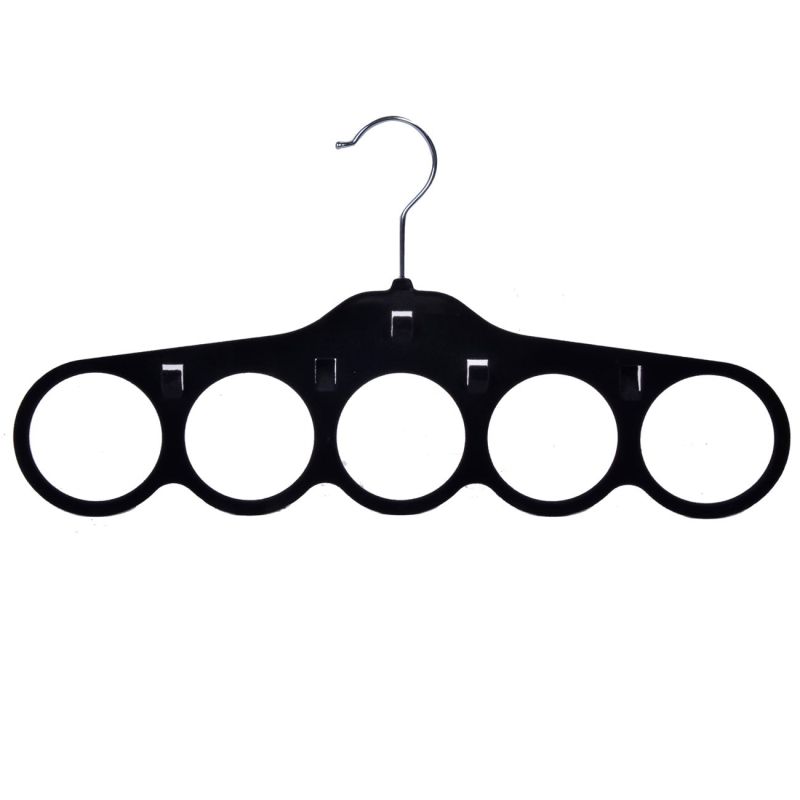 Пластмасова закачалка с противоплъзгащо покритие от велур в черен цвят, специално предназначена за шалове.