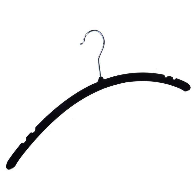 Комплект от 4 броя класически закачалки, изработени от устойчива пластмаса с противоплъзгащо покритие от кадифе в черен цвят.