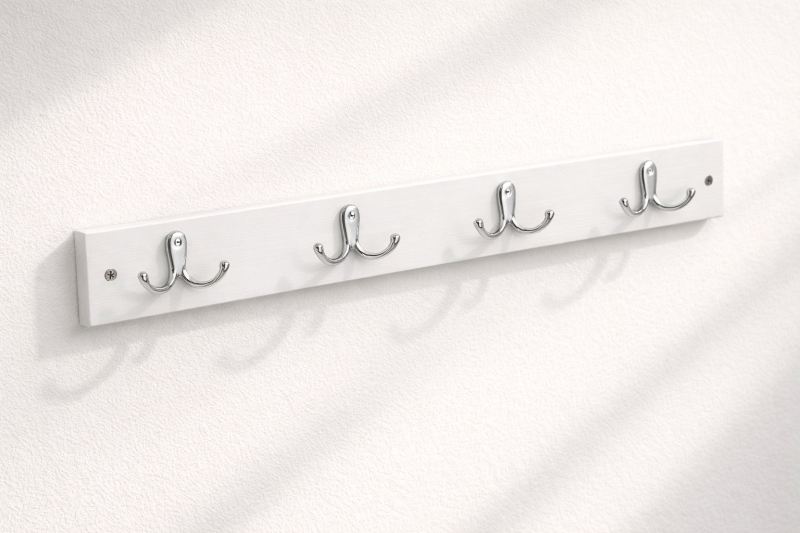 Елегантна закачалка за стена, изработена от висококачествена дървесина в бял цвят.