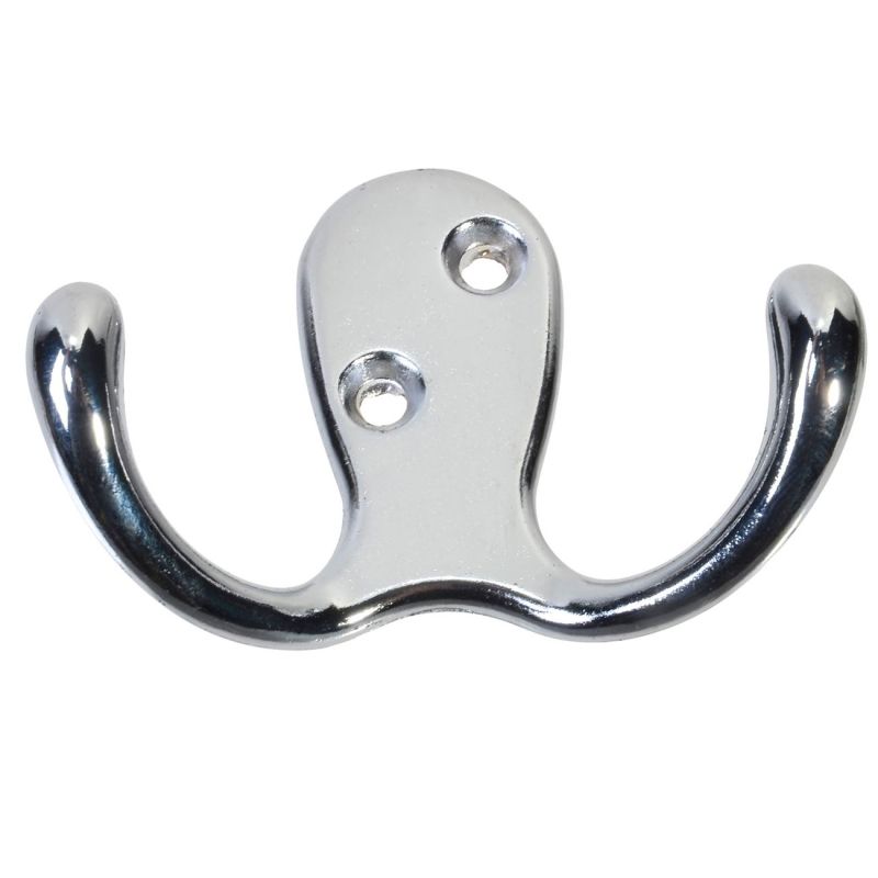 Двойна закачалка за стена - тип кукичка, изработена от метал в сребрист цвят.
