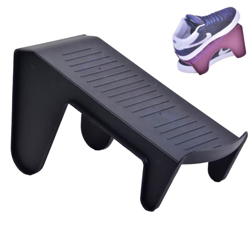 Органайзерът представлява малка, наклонена на около 45° платформа, на която поставяш едната обувка отгоре, а другата под нея, само че в обратна посока.