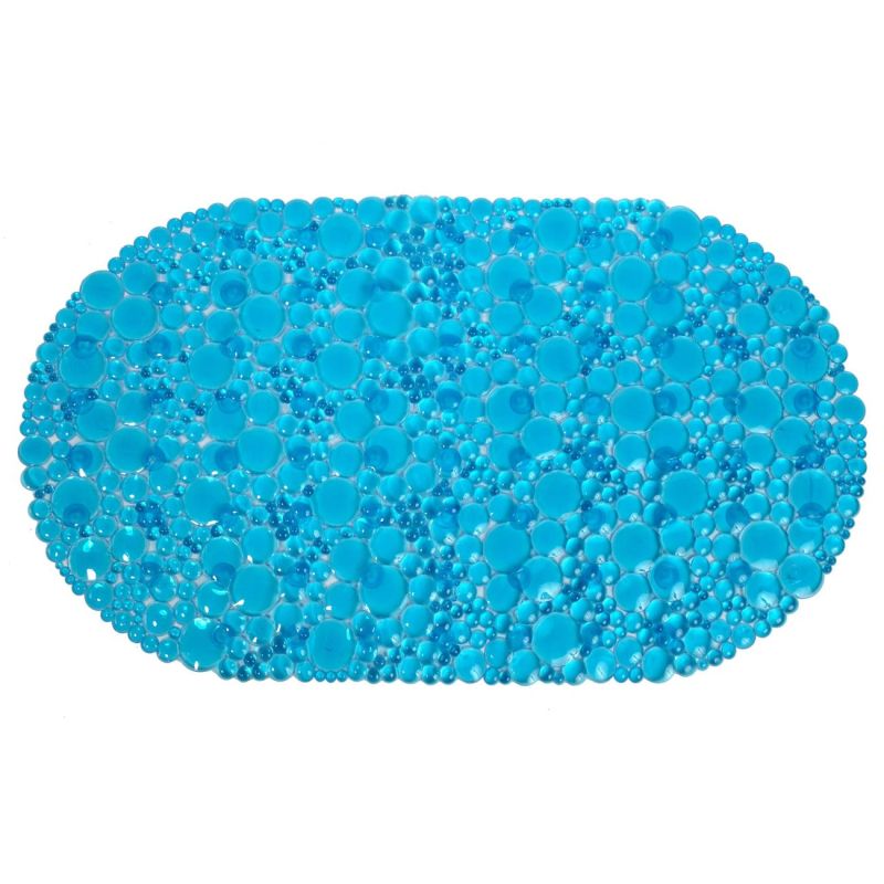 Противоплъзгаща постелка за баня, изработена от висококачествена пластмаса, имитираща камъчета в син цвят.