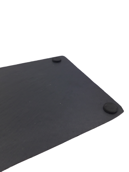 Правоъгълна каменна плоча за сервиране, изработена от обработена естествена скала - шисти в цвят на вулканичен камък.