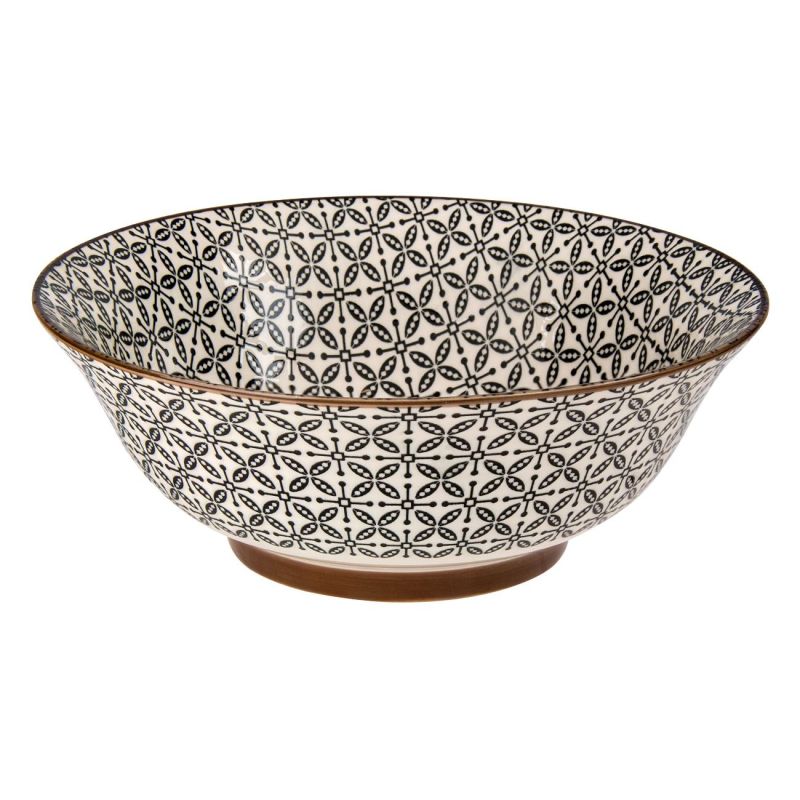 Функционална купа за сервиране, изработена от висококачествена керамика със стилизирани флорални мотиви в черно-бял цвят отвън и отвътре.