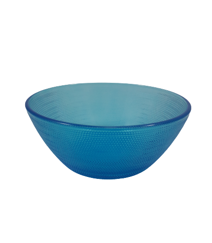 Многофункционална купа за хранене и сервиране, изработена от качествено стъкло в цвят тюркоаз с релефна външност.