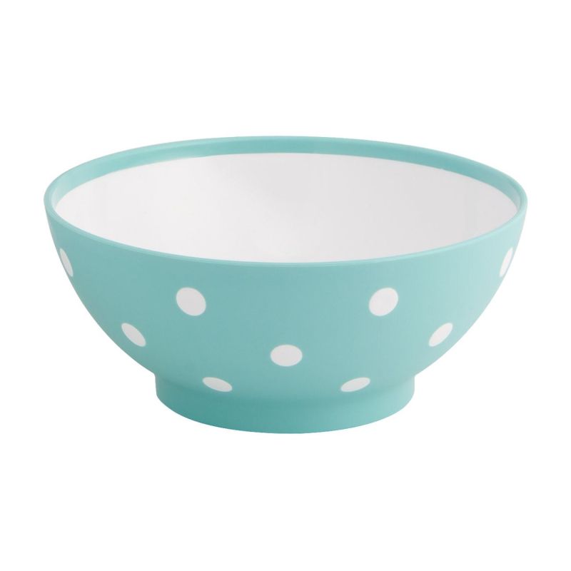 Универсална купа за хранене и сервиране, изработена от качествена пластмаса в светло син цвят на бели точки.